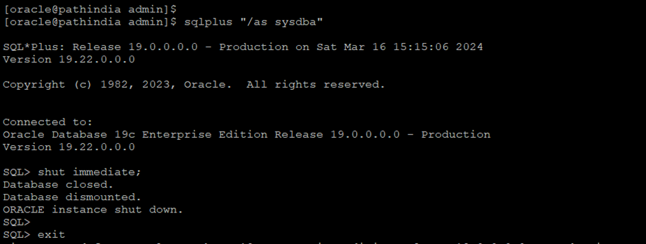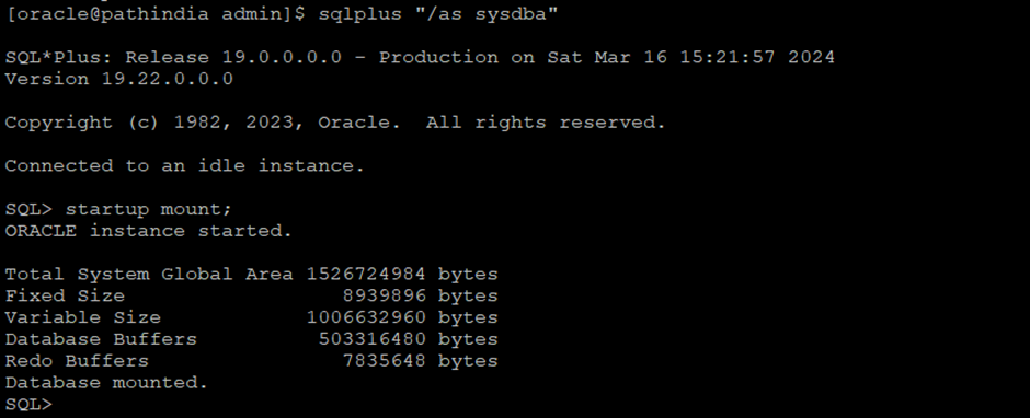 Step-4 Now first, shut down the database and start the database in mount state