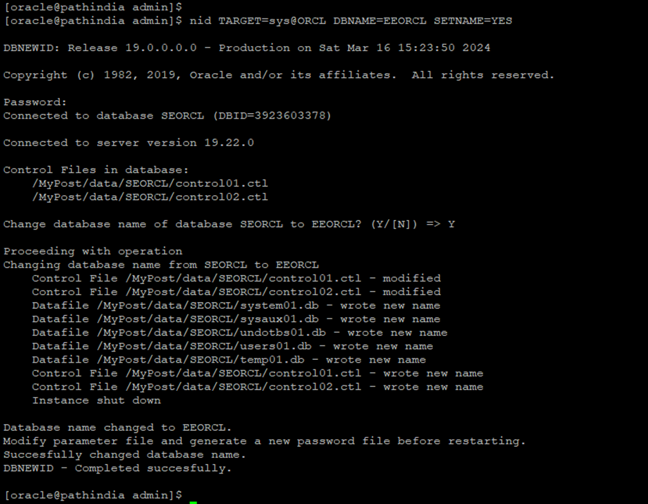 Step-5 initiate/execute the command to change the database name only.