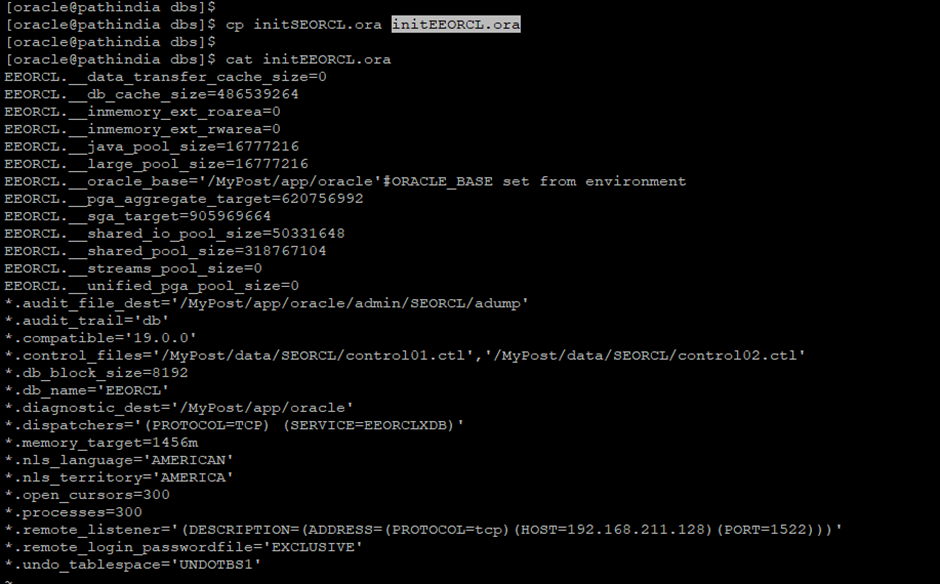 Step-6 Rename the initialization parameter file and Manually change the DB_NAME in parameter file as below snapshot