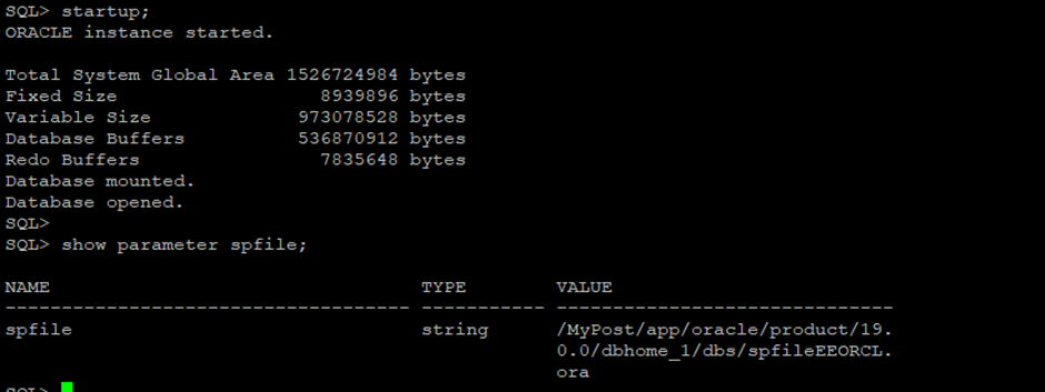 Step-9 Start the Database normally (It will start with new spfile)