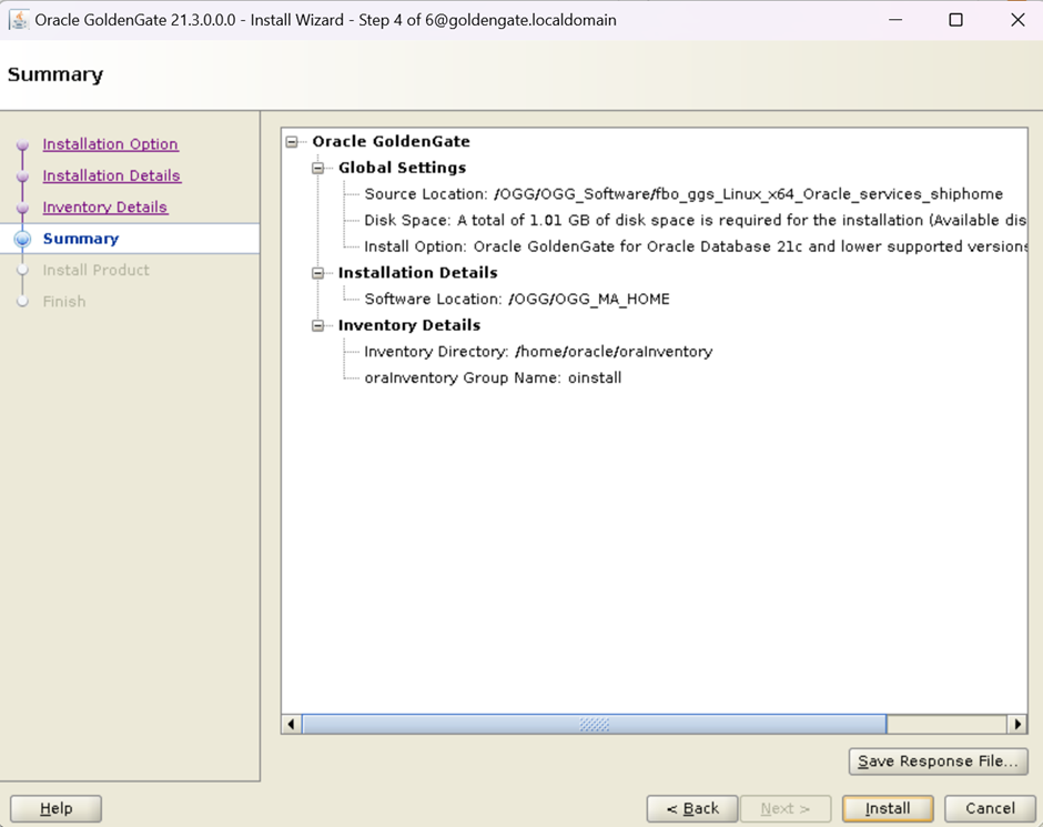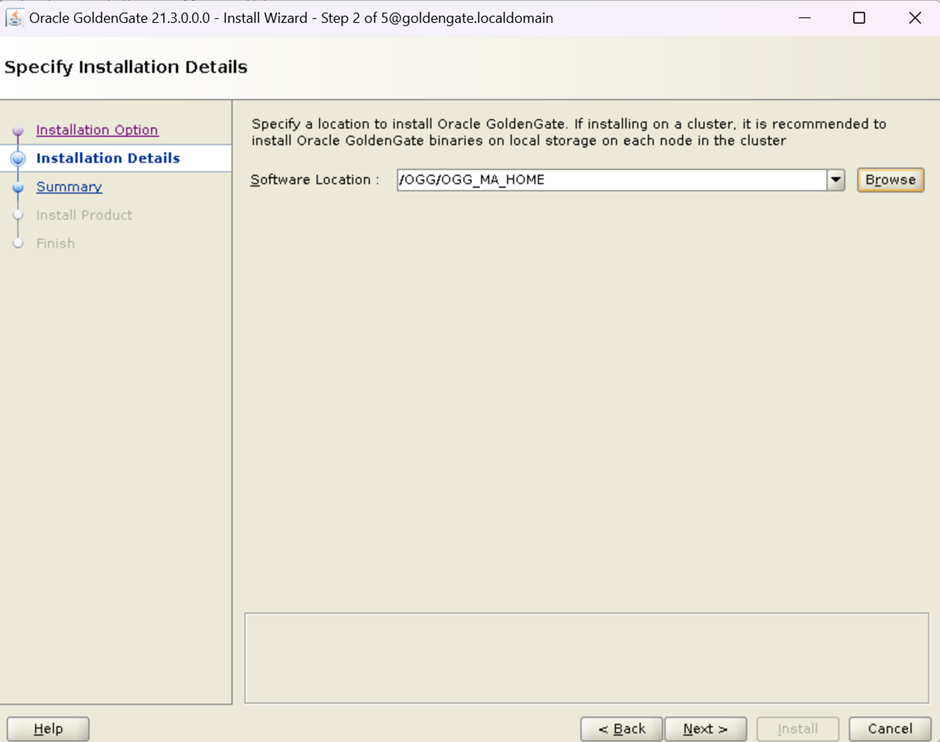 Step-2 Oracle GoldenGate for Microservices installation. (The location of software is /OGG/OGG_MA_HOME)
