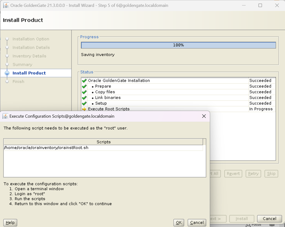 On this screen, Installer ask you to execute scripts using root user