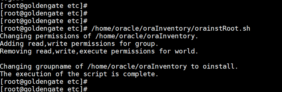 Changing permissions of /home/oracle/oraInventory.Adding read,write permissions for group.Removing read,write,execute permissions for world.Changing groupname of /home/oracle/oraInventory to oinstall.