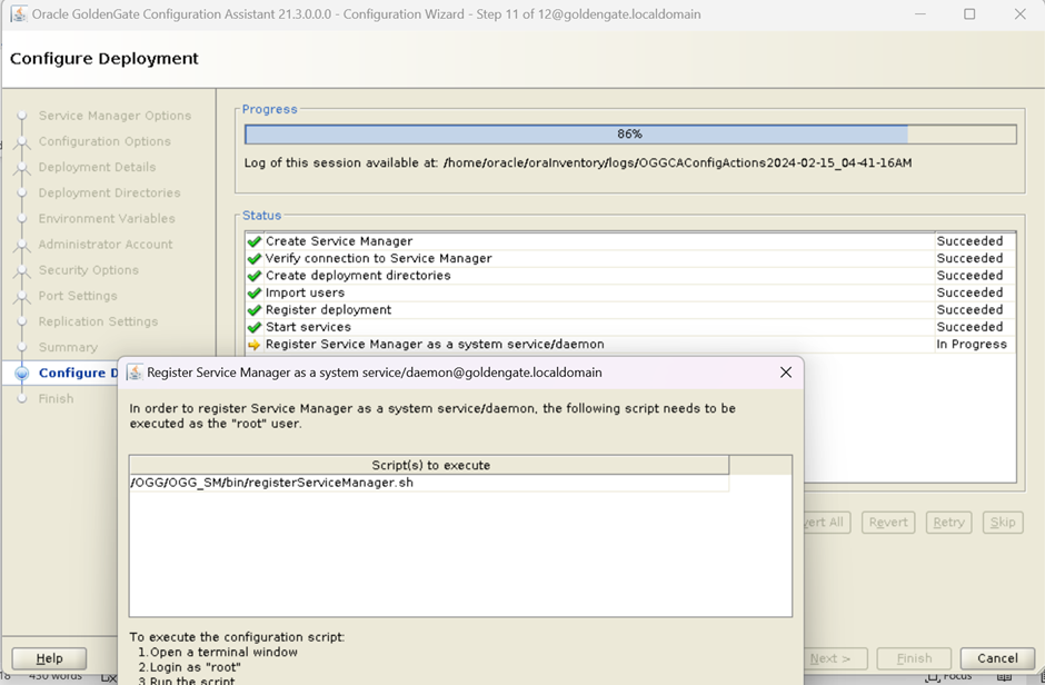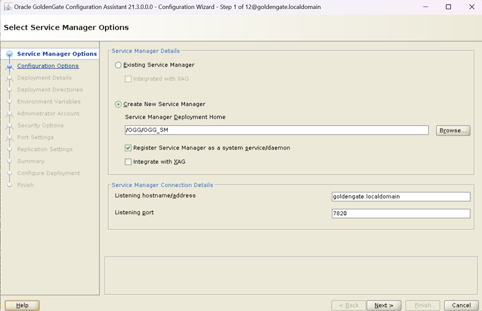 Step-3 Configure Service Manager using./oggca. (The location of Service Manager is /OGG/OGG_SM)