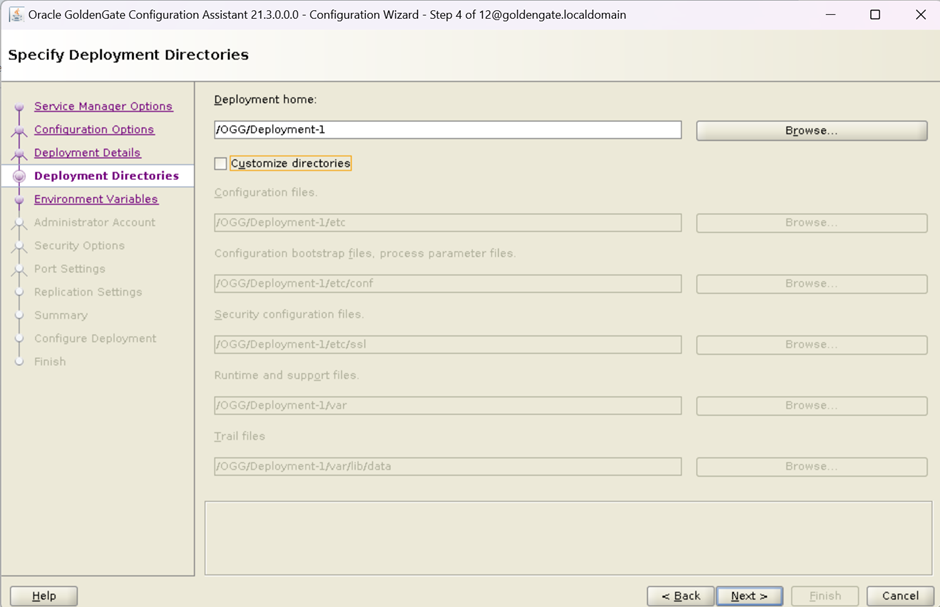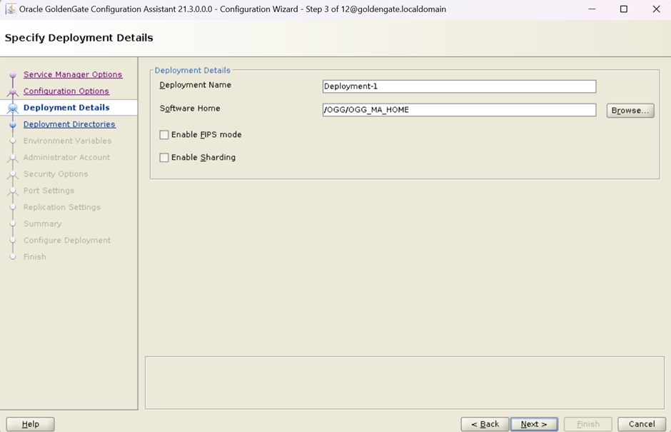 On this screen, Provide the name to deployment and software home will be OGG HOME.