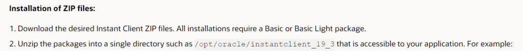 Download the Oracle instant client software from https://www.oracle.com/in/database/technologies/instant-client/linux-x86-64-downloads.html