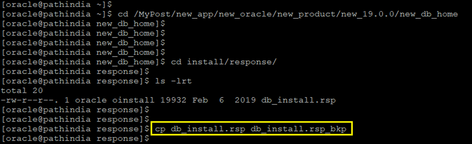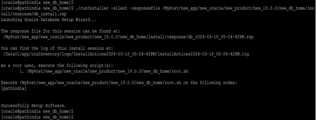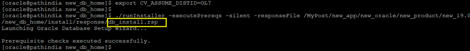 command:- ./runInstaller -silent -responseFile /MyPost/new_app/new_oracle/new_product/new_19.0.0/new_db_home/install/response/db_install.rsp