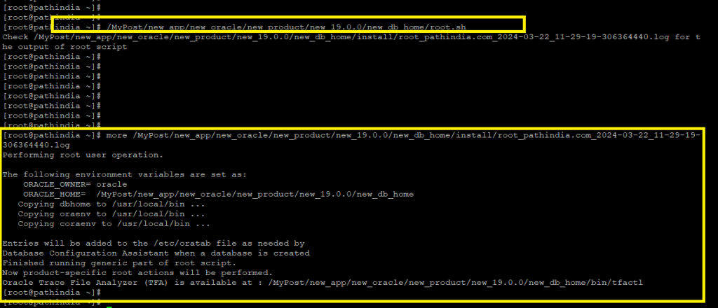[root@pathindia ~]# /MyPost/new_app/new_oracle/new_product/new_19.0.0/new_db_home/root.sh